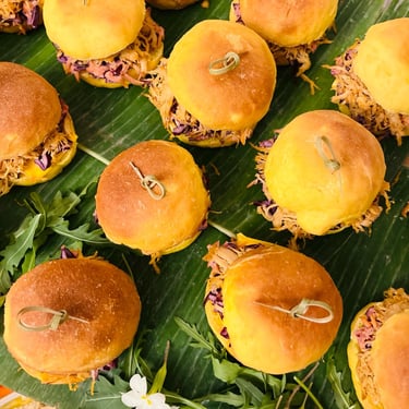 buns extra moelleux maison, à la viande effilochée, coleslaw, cornichons
