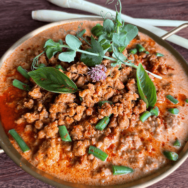 pate de curry maison et ajusté selon vos envies, lait de coco, haricot vert, citronnelle, basilic thaï un curry doux et acidulé